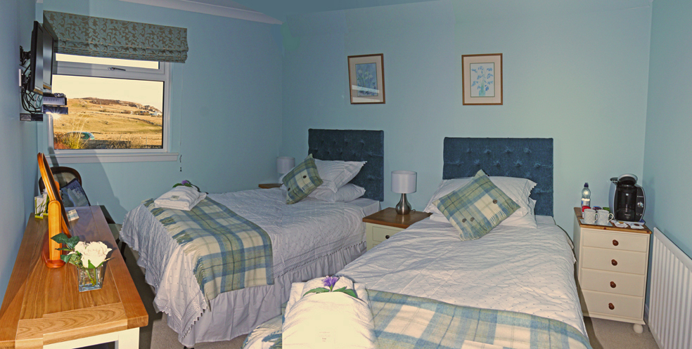 Caol–Ithe Guesthouse offers an abundance of comfortable and luxurious accommodation with two Double ensuites, one twin ensuite and one twin with private bathroom. Twin room 4 can also be configured as super king if desired. All our rooms have flat screen TV with DVD player, Internet access, Tassimo Tea and Coffee making facilities, with complimentary toiletries.