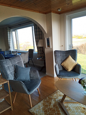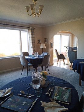 Breakfast is prepared from the best of local products wherever possible and is taken in our spacious dining room with 180 degree views East to West from Ben More to the Sound of Iona, giving panoramic views to Iona and the Abbey across the famous red granite rock formations of Fionnphort along the Ross of Mull and Malcolm's Point, in the distance Ben More, to the East and beyond. We offer a comprehensive breakfast menu which includes fruit juice, cereals, porridge, yoghurts and pastries. Hot choices include freshly made to order Scotch pancakes with your choice of topping and smoked salmon with scrambled eggs. A full Scottish breakfast with a vegetarian option is also available. Breakfast specials are also available depending on produce available.